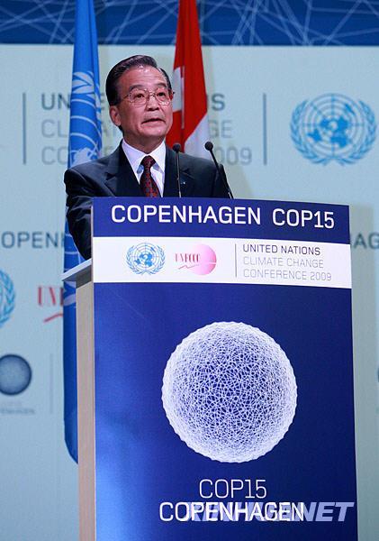 12月18日中国国务院总理温家宝在哥本哈根气候峰会领导人会议上演讲 武巍摄